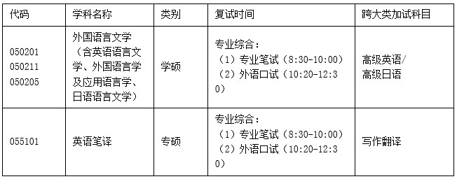 加试科目:写作翻译(英语笔译方向的跨大学科门类考生);